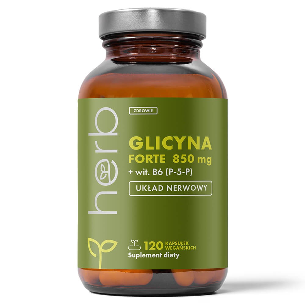 Glycine FORTE 850 mg + Vitamin B6 is a dietary supplement containing one of the simplest, yet most important amino acids – glycine, which plays a crucial role in nervous system function , detoxification processes, and sleep quality . The addition of vitamin B6 in the form of P-5-P (pyridoxal-5-phosphate) supports the proper synthesis of neurotransmitters and improves the absorption and utilization of glycine in the body.Glycine can support sleep , reduce nervous tension, and regenerate muscles and the nervous system . Therefore, it is especially recommended for people who are stressed, physically active, or have trouble with sleep quality. Thanks to the high dose in a single capsule, it offers easy and effective supplementation without unnecessary additives.
