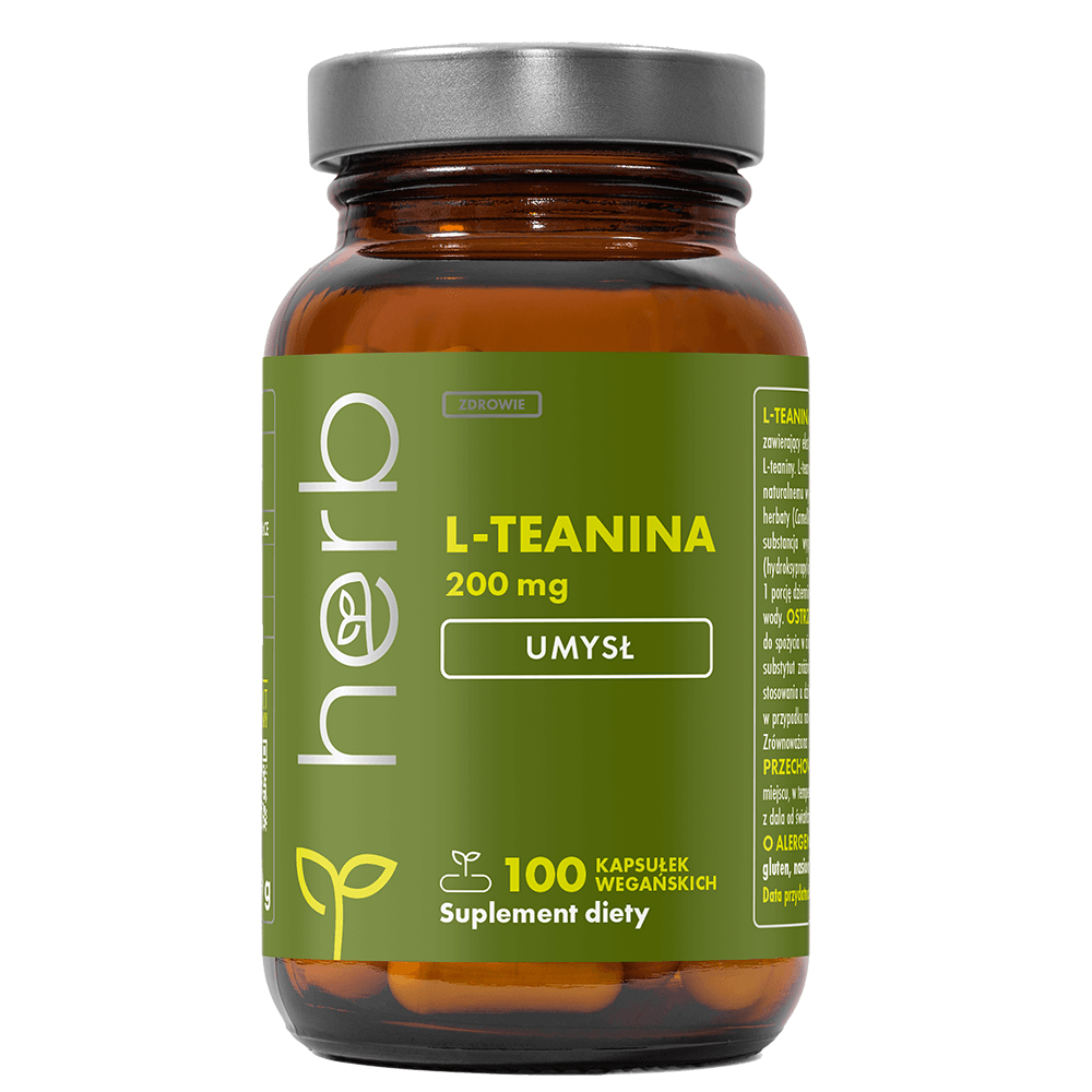 L-Theanine 200 mg is a dietary supplement containing green tea leaf extract (Camellia sinensis), standardized to 99% L-theanine – an amino acid known for its gentle yet effective properties supporting relaxation, concentration, and mental balance. L-theanine doesn't have a sedative or numbing effect – it supports mental clarity and focus while reducing tension and stress.