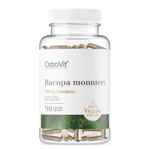 OstroVit Bacopa Monnieri VEGE is a dietary supplement in vegan capsules (HPMC), containing fine-leaved bacopa extract. Bacopa monnieri is a plant used in traditional Ayurveda for years, widely known and appreciated alongside Ashwagandha or Jatamansi. The supplement is traditionally used in a variety of ailments, but its main use is in states of increased mental effort, improving memory and concentration.