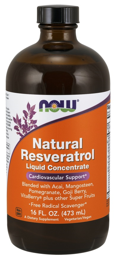 Resveratrool on polüfenool, mida leidub looduslikult punaste viinamarjade, teatud marjade ja muude taimede nahas. Hiljutised uuringud on näidanud, et resveratrool võib toetada tervislikku kardiovaskulaarset funktsiooni tänu võimele kustutada reaktiivseid hapnikuühendeid, samuti tänu võimele edendada normaalset bioloogilist stressi. NÜÜD resveratrooli vedelkontsentraadil on ka looduslikult esinevaid proantotsüanidiine (OPC) viinamarjaseemnete ekstraktist, VitaBerry'st, acai'st, jõhvikast ja granaatõunast, mis täiendavad resveratrooli rakulisi ja kardiovaskulaarseid toeomadusi.