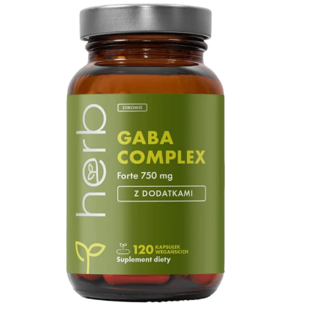 HERB GABA COMPLEX FORTE 750 mg ir uztura bagātinātājs, kas paredzēts cilvēkiem, kuri piedzīvo stresu, nervu spriedzi un grūtības aizmigt. Šis rūpīgi atlasīto sastāvdaļu komplekss atbalsta organisma dabiskos relaksācijas procesus un sagatavo to miegam.